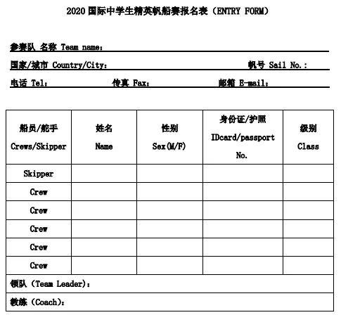 參賽隊請于此之前將報名表發送至青航精英, 報名表見附件D,填寫好后發送至tingtaosailing@163.com(青航精英),收到組委會確認后方為完成報名手續。