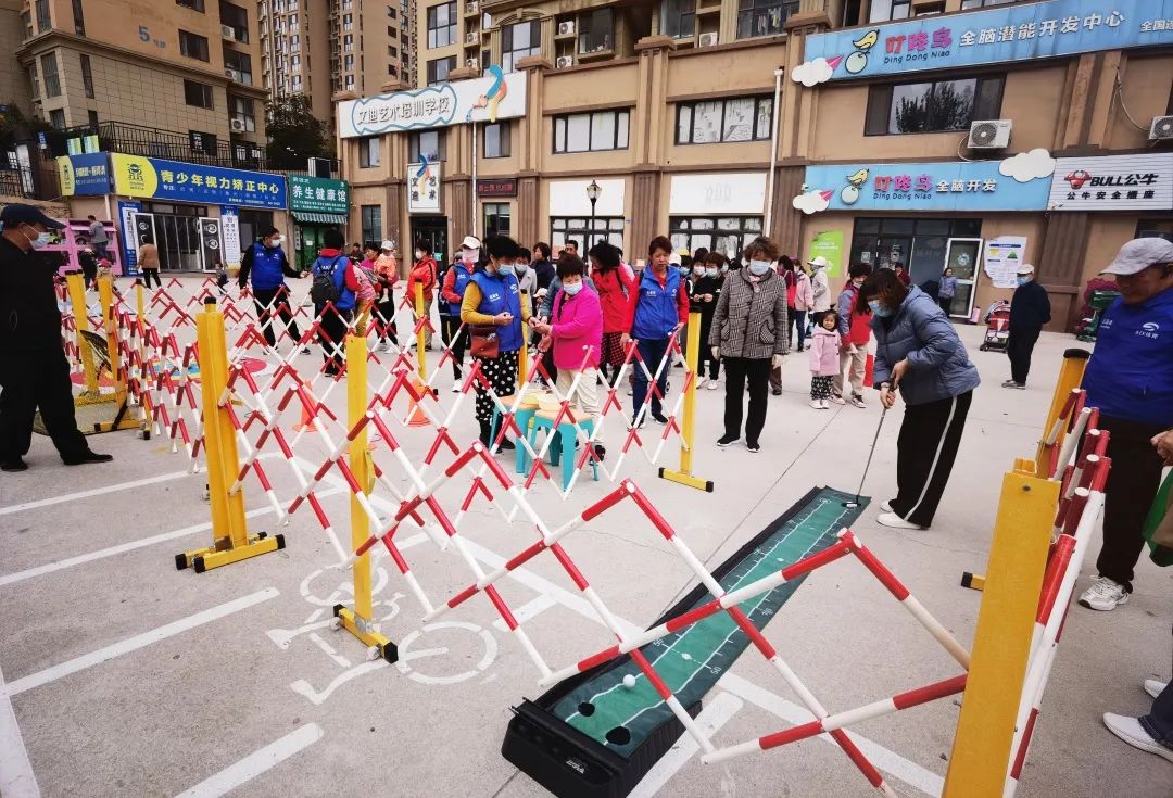 活動現場氣氛熱烈,高潮迭起。太極劍表演、水兵舞-《十送紅軍》、太極棍表演,居民們紛紛自發進行了熱情洋溢的文藝表演。一箭三雕(射箭項目)、乾坤一擲(沙包投擲打靶)、臨門一腳(足球射門)、好運三連(工具筷夾球)、擲無虛發,居民們踴躍參與到豐富多彩的趣味運動項目中,認真體會運動的樂趣。