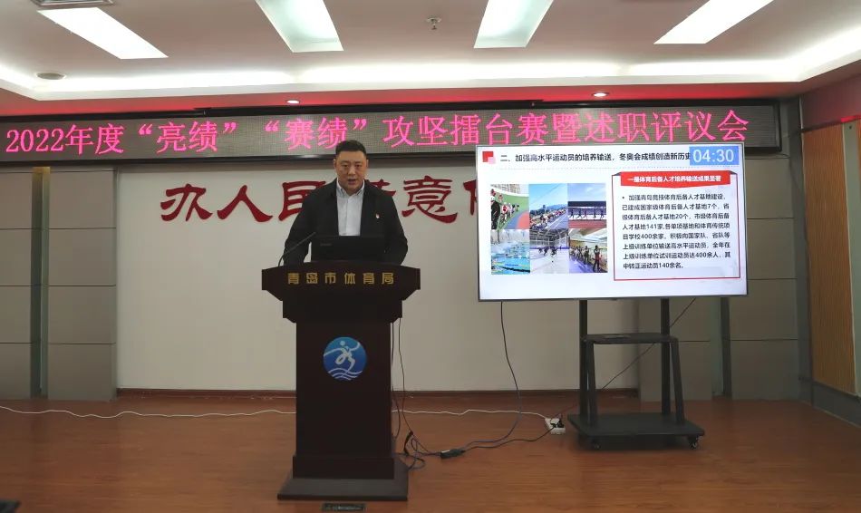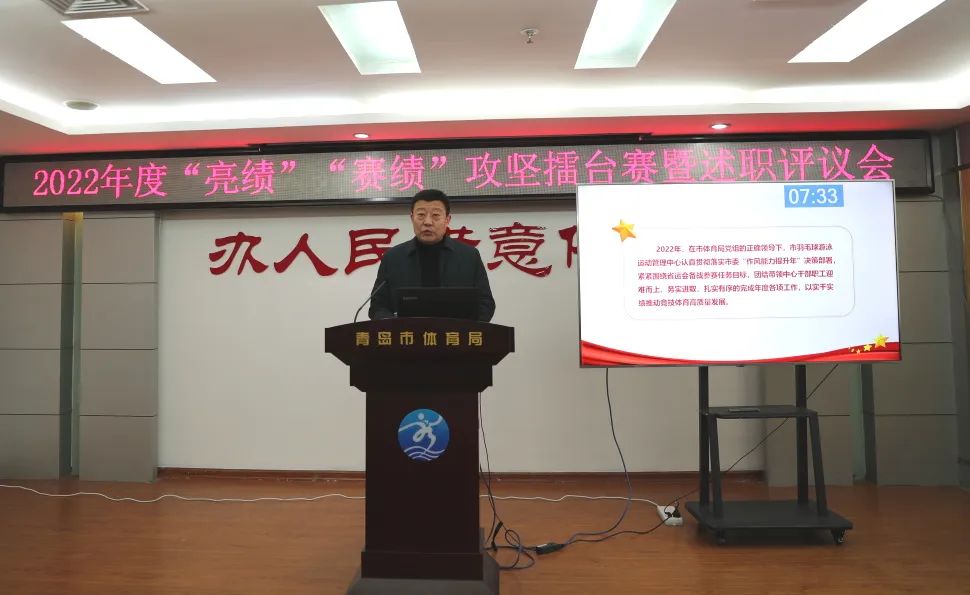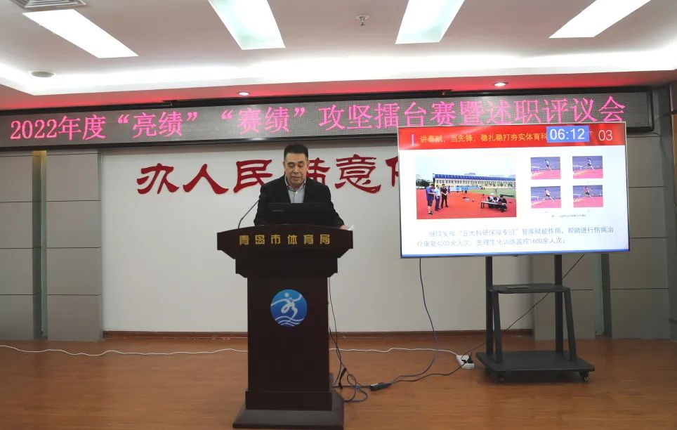1月6日,市體育局召開2022年度“亮績”“賽績”攻堅(jiān)擂臺賽暨述職評議會(huì),機(jī)關(guān)處室、局屬單位報(bào)告2022年度工作,展示改革攻堅(jiān)、創(chuàng)新創(chuàng)優(yōu)成果。市體育局黨組書記、局長、市體育總會(huì)主席車景華出席會(huì)議并講話。