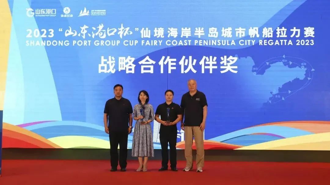 儀式現(xiàn)場(chǎng)播放了2023“山東港口杯”仙境海岸半島城市帆船拉力賽精彩視頻,近20天時(shí)間里,各船隊(duì)的團(tuán)結(jié)作戰(zhàn)、勇者爭先,市民參與的熱鬧與快樂以及各港口城市風(fēng)光都在現(xiàn)場(chǎng)定格。最終,山東港口青島港-丹泉酒業(yè)賽曼隊(duì)勇奪冠軍,山東港口濰坊港-夢(mèng)之藍(lán)·飛魚帆船隊(duì)、山東港口東營港-帆船之都·青島帆船隊(duì)分列摘得亞軍和季軍,山東港口威海港-青島電影學(xué)院隊(duì)、山東港口煙臺(tái)港-山東“明興”隊(duì)、山東港日照港-我要去航海隊(duì)、山東港口濱州港-全時(shí)健身隊(duì)位列四至七名。