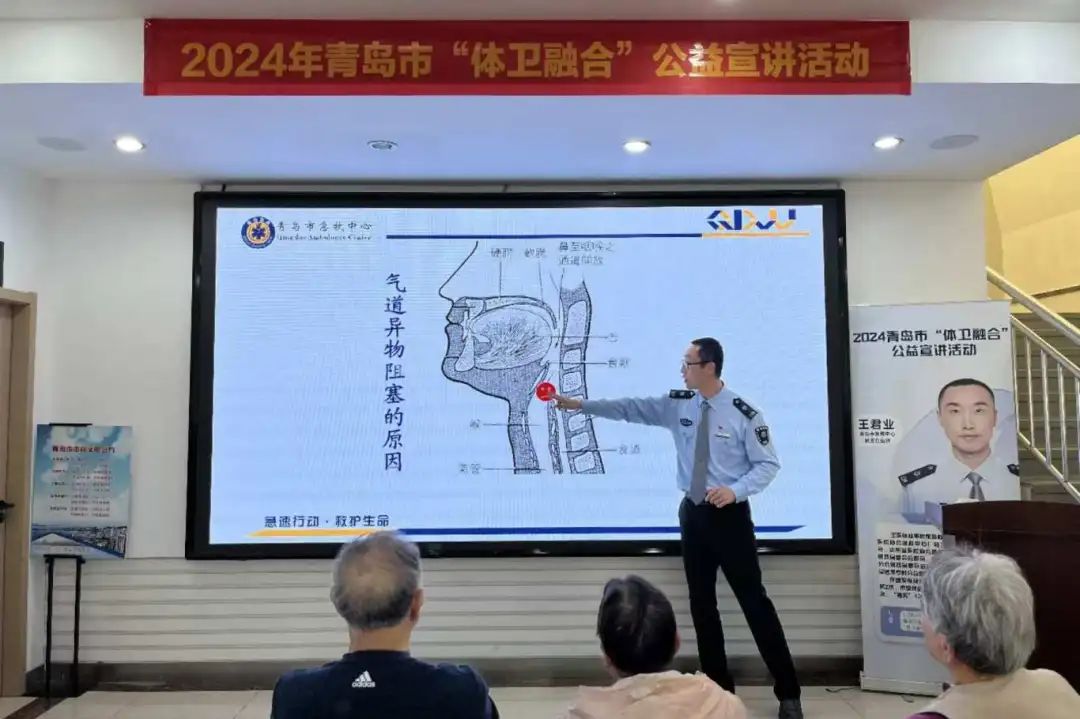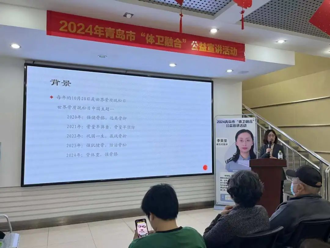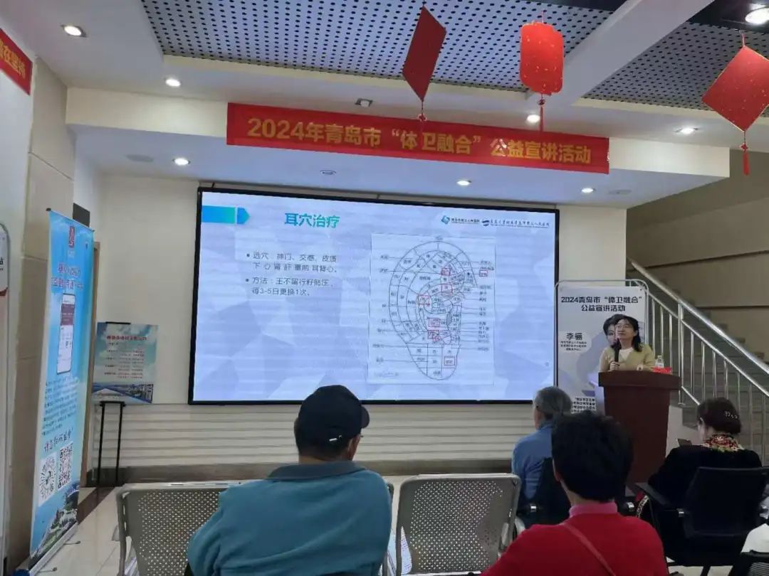為深入貫徹全民健身國家戰略,落實《關于構建更高水平的全民健身公共服務體系的意見》,10月30日至11月1日,青島市體育局聯合青島市委市直機關工作委員會開展的“體衛融合”公益宣講活動在市南區湛山街道鹽城路社區黨群服務中心陸續開講。活動特邀青島市急救中心副主任醫師王君業、青島市第三人民醫院中醫康復科副主任醫師李驪和青島市疾病預防控制中心副主任醫師李斐斐分別作專題講座,周邊社區的150余名居民參與聽講并從中獲益。