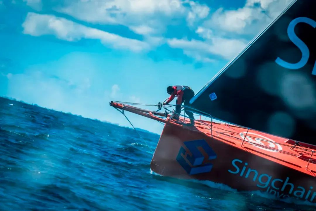徐京坤對起航日記憶猶新:“2024年11月10日,我獨自駕駛18.28米長的IMOCA水翼賽船,從法國旺代省萊薩布勒多洛訥港開啟第一次旺代單人不間斷環球帆船賽。比賽途經世界上最危險的航段,包括充滿巨大風暴的南大洋、‘風暴走廊’惡魔島合恩角,以及充滿浮冰和狂風巨浪的南緯50度‘咆哮西風帶’。3個多月時間里,要面對惡劣天氣、設備故障和心理壓力。”