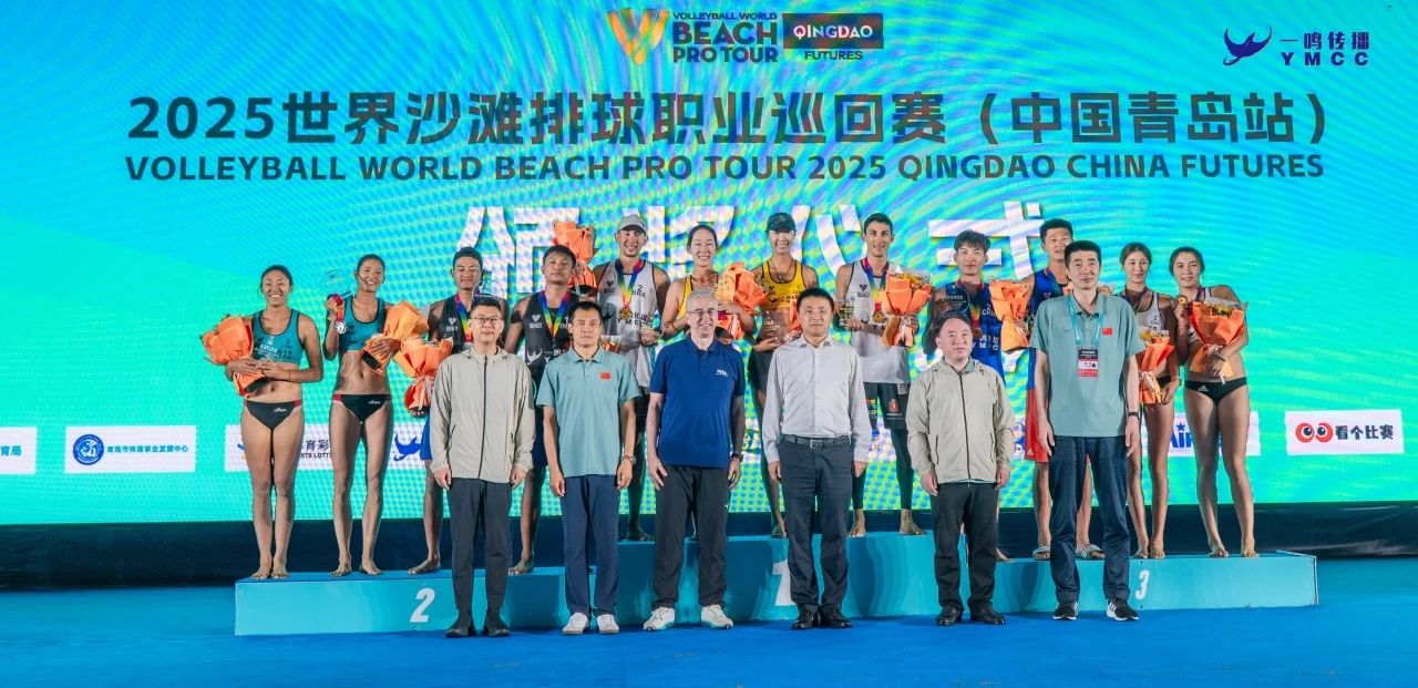 6月15日晚,2025世界沙灘排球職業(yè)巡回賽(中國青島站)在石老人海水浴場圓滿落下帷幕。國際排球聯(lián)合會技術(shù)代表尼科斯·索菲亞諾斯、國家體育總局排球運(yùn)動管理中心沙灘排球部副主任劉冰、山東省體育局排球運(yùn)動管理中心副主任安家杰、青島市人大常委會副主任張建剛、青島市體育局局長蔡全記等領(lǐng)導(dǎo)嘉賓出席頒獎儀式。