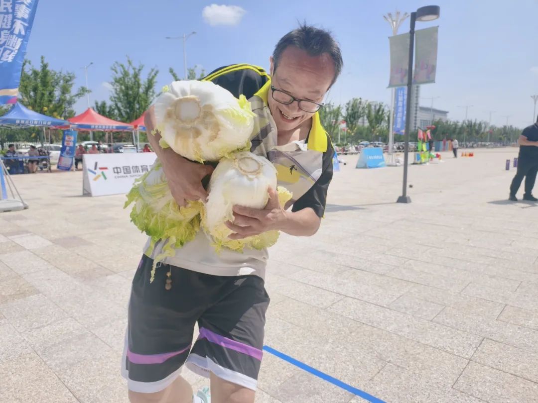雖然天氣較為炎熱,但擋不住居民參與運動的熱情。本次社區運動會設置了單人項目、團體項目、親子項目共3個版塊8項比賽,兼顧競技性與趣味性。除了傳統項目跳繩、趣味保齡球、企鵝漫步、飛盤九宮格、定點投籃,以及增進家庭親子友誼的“搭橋過河”之外,還設置了“蔬菜大豐收”這個具有當地特色的項目。為了避免浪費和損耗,特意選取了更為耐用的白菜和土豆等。選手們懷抱著各種蔬菜進行接力,忙得不亦樂乎,充分展現當地特色的同時,還將比賽場地變成了開心農場的現實版體驗。最終,“蔬菜大豐收”項目將比賽使用的蔬菜直接作為獎品發給參賽居民。