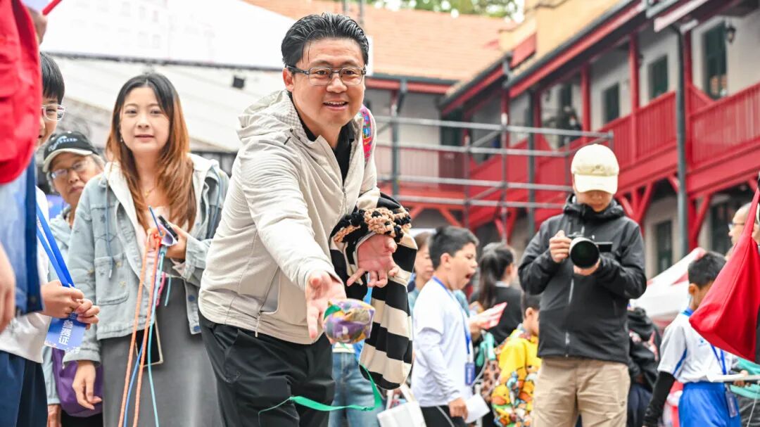 在大鮑島廣興里,一場別開生面的趣味運動會同步舉行。筷子夾球、投壺、扔沙包、掉落棒等市民喜聞樂見的體育項目輪番上演,吸引了市民和游客踴躍參與。無論是銀發(fā)長者還是稚齡孩童,都能在這里找到屬于自己的運動樂趣,歡聲笑語回蕩在廣興里的上空,生動詮釋了“讓運動成為習(xí)慣讓體育走進生活”的健康生活理念。